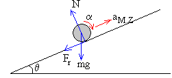 Gurpilaren formaren arabera (eraztuna, zilindroa edo esfera) bere inertzia-momentua honela adieraz daiteke: Imz=k·mr2 eta hemen k=1 eraztunerako, k=1/2 zilindro edo diskorako eta k=2/5 esferarako. Berridatziz: amz+kra= -g·sinθ (1) Bestalde, gurpilak ez badu irristatzen honako baldintza ere beti bete behar da: amz=a ·r Ibilbidearen ekuazioa