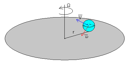 Las componentes de la velocidad del punto de contacto P de la esfera con la plataforma son: vx=Vx-ωy·R Si el punto de contacto P dista r del eje de rotación de la plataforma que gira con velocidad angular W. Las componentes de la velocidad del punto P vx=-W·r·senθ=-W·y Para que la esfera ruede sin deslizar, el punto de contacto P debe de estar en reposo respecto de la plataforma. Se cumplirá por tanto, -W·y=Vx-ωy·R Las fuerzas sobre la esfera son: