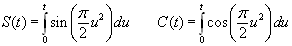 Integral-mota hori Fresnel-en integrala da, sinu eta kosinuarentzat: