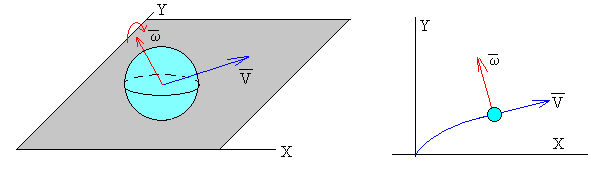 Demagun lau osagaiak positiboak direla (Vx, ωx,Vy, ωy) goiko irudiak erakusten duen bezala. Esferaren P puntua planoa ukitzen ari da eta honako abiadura du: vx=Vx -ωy·R Esferak hiru indar jasaten ditu: