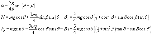 4.- Irauli egiten da eta irristatu A erpinaren azelerazioa ez da nulua a³ 0, eta azelerazio angeluarra ere ez a ³ 0. Baina maldaren erreakzio normala (N) A erpinean bertan aplikatzen da, beraz d=b/2. Eta irristatzen duenez, marruskadura-indarra ezaguna da: Fr=m ·N Datu horiek ordezkatzen badira, higiduraren ekuazioetan: