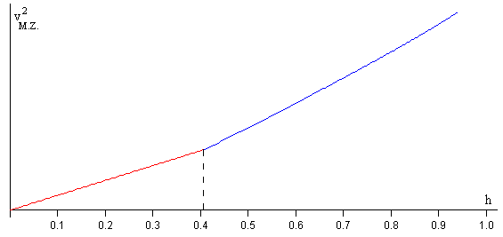 Datu horiekin, hona hemen angelu kritikoa: θc =24.2ş Ondorengo irudiak erakusten du, ardatz horizontalean, gurpilaren hasierako h altuera (h=x·sinθ) eta ardatz bertikalean, gurpilaren masa-zentroaren abiadura finalaren karratua (v2mz):
