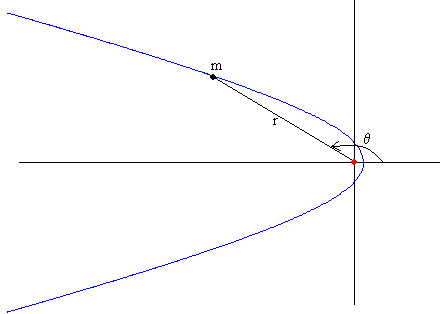 r es la distancia del centro del planeta al asteroide y θ es el ángulo que hace el radio vector que une el asteroide con el centro del planeta con el eje X, tal como se ha mostrado en la figura.