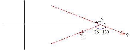 La dirección de la velocidad del asteroide cambia a medida que se acerca al planeta y luego, cuando se aleja. El cambio en la dirección de la velocidad es 2α-180 tal como se aprecia en la figura.