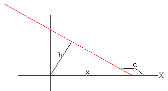 La asíntota de una de las ramas de la hipérbola hace un ángulo α con el eje X y dista b del origen como podemos ver en la figura.
