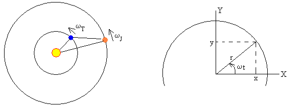 xJ=rJcos(ωJ·t), yJ=rJ·sin (ωJ·t) con ωJ=2π/PJ