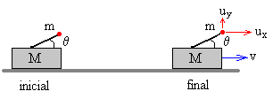 En la dirección vertical el carro se encuentra fijo al suelo (primer caso estudiado), por tanto, la componente vertical de la velocidad del proyectil es uy=u0·senθ.