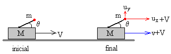 El carro se mueve con velocidad V antes del disparo y el ángulo de tiro es θ