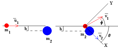 Se denomina parámetro de impacto b a la distancia entre la dirección de la velocidad del primer disco u1 y el centro del segundo disco que suponemos inicialmente en reposo.