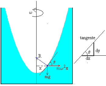 Habremos observado que cuando un recipiente cilíndrico que contiene un líquido se pone en rotación alrededor de su eje, la superficie del líquido adquiere la forma de un paraboloide.