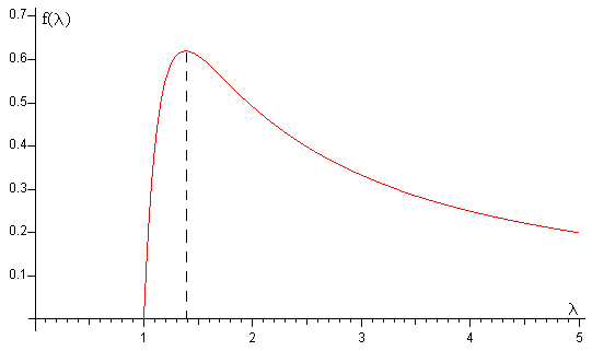 Obtenemos el extremo de la función, igualando la derivada de la función f(λ) a cero