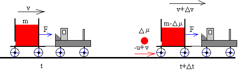 p(t+Δt)=(m-Δμ)(v+Δv)+ Δμ(–u+ v)