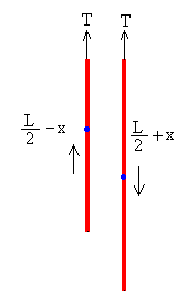 La cadena se mueve, en un instante dado t, cuando los extremos se desplazan x, la energía de la cadena es
