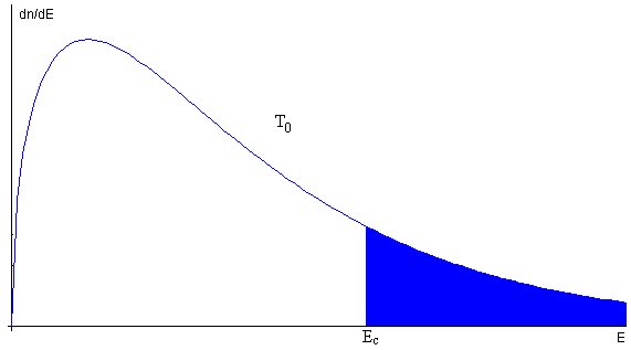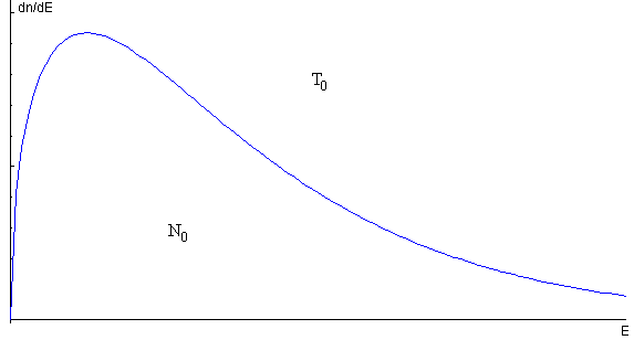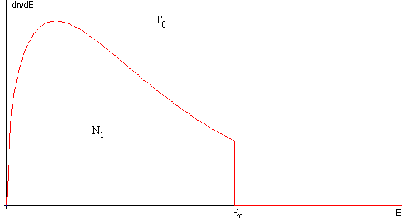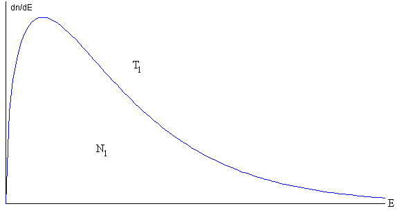 Por algún procedimiento (véase el artículo citado en las referencias) se eliminan del recipiente todas las moléculas que se muevan con una velocidad superior a vc o tengan una energía superior a Ec (en color azul en la figura) quedando N1 moléculas en el recipiente.
