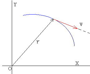 En la figura se señala el vector posición r del móvil en el instante t y el vector velocidad v, cuya dirección es tangente a la trayectoria.