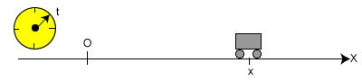En la recta situamos un origen O, donde estará un observador que medirá la posición del móvil x en el instante t.
