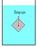 Empuje=ρf·gV Es el producto de la densidad del fluido ρf, por la aceleración de la gravedad g y por el volumen V de la porción de sólido sumergido. |