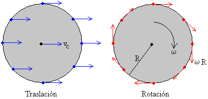 El movimiento general de un sólido rígido, es la composición de un movimiento de traslación del centro de masa y de un movimiento de rotación alrededor de un eje que pasa por el centro de masa. En el movimiento de rodar sin deslizar, la rueda se traslada a la vez que gira.